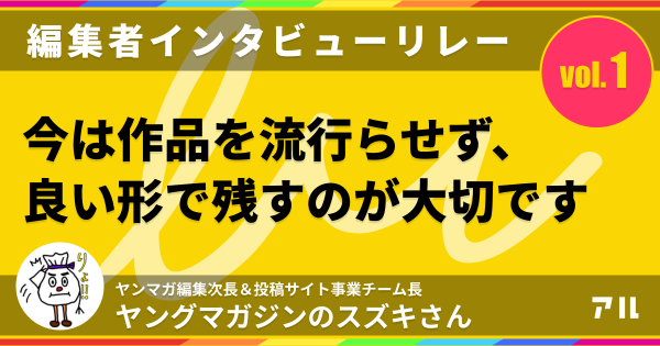 ★ヤンマガ編集次長・スズキさんに聞く今のマンガのつくり方。編集者インタビューリレー Vol.1 | アル