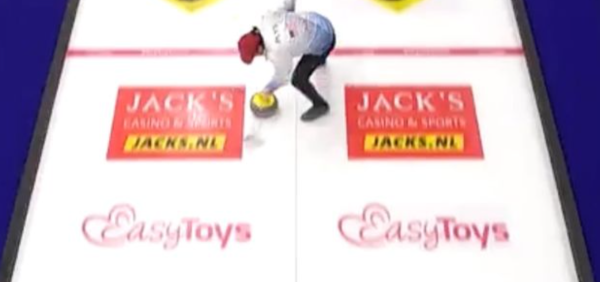 ★氷上にアダルトグッズメーカーのロゴ。カーリング五輪最終予選をNHKが中継中止