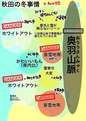 ★「秋田、怖すぎだろ冬wwwwwwwww」・・・秋田=豪雪地帯と一括りにされるけど、県内でも冬の事情は違うんだよという地図 – Togetter