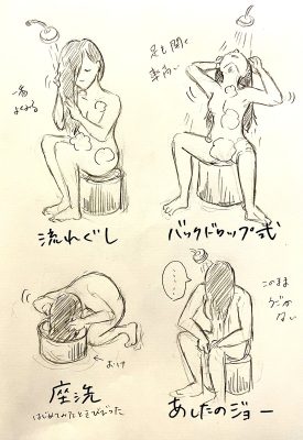 ★銭湯にて、髪の毛を洗うときのポーズについて「流れぐし」「あしたのジョー」など、どのスタイルで洗ってる? – Togetter