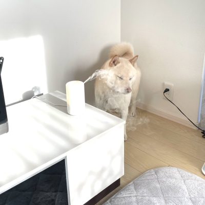 ★「メイク前の女優か」加湿器の前で保湿する犬さんが可愛い「こころなしか顔も女優顔w」 – Togetter