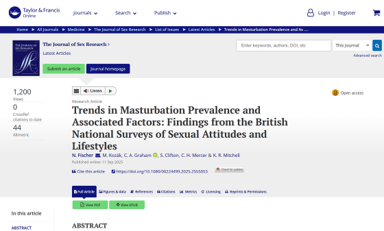 ★「マスターベーションをする人が男女ともに増加している」という研究結果が発表される