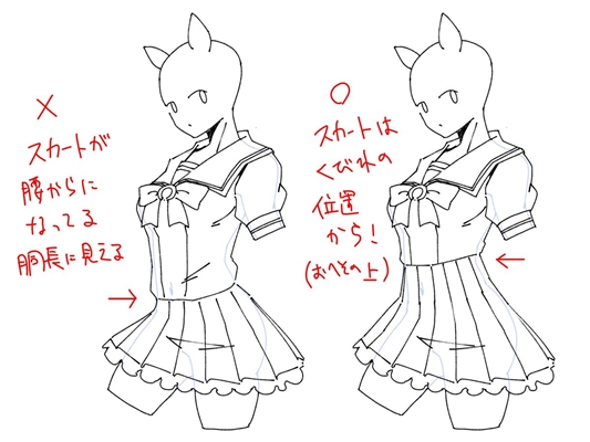 ★女性を描くとき、腰からボトムスを描く人もいるが、実はヘソより上から描くのが基本「リアルで女装するときにも特に重要」「男女でウエスト位置が違う」 – Togetter