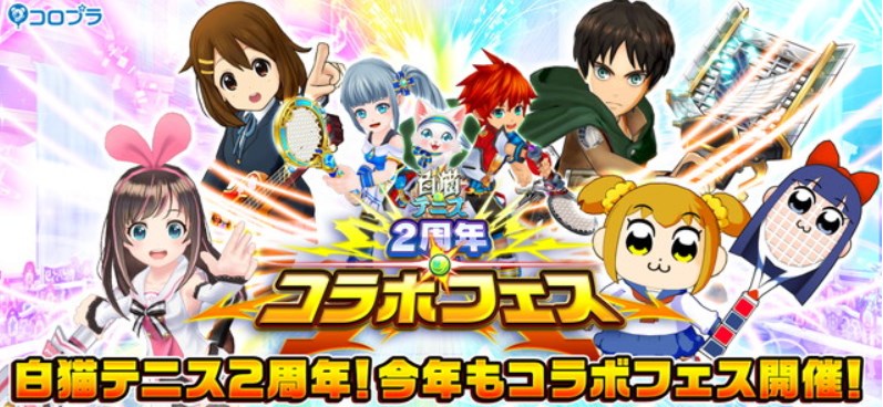 ★コロプラ『白猫テニス』が「けいおん!」「進撃の巨人」「キズナアイ」「ポプテピピック」と初のコラボ! 2周年記念キャンペーンも開催!